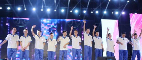 晚会伊始,舞台上的LED屏幕首先播放2019级新生宣传片、“烛光”实践队纪录片、新生军训教官寄语和建校15周年宣传短片。十多分钟的视频精彩呈现了我校近年来获得的各种奖项以及办学成果,展示了我校师生生机勃勃,奋发向上的精神面貌。随后,由街舞社带来的开场舞动感十足,将全场氛围瞬间点燃,正式拉开晚会序幕。
