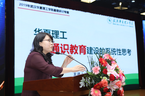 通识教育委员会常务副主任、商学院院长程艳霞教授作题为《武汉华夏理工通识教育建设的系统性思考》的报告。她从我校通识教育的推进及阶段性成果、课程模块设置与依据、通识教育建设的系统性思考三方面展开汇报。她表示,我校自2018年12月启动通识教育改革以来,各项工作推进顺利,现已取得阶段性成果。她针对我校的特点及应用型大学的定位,仔细分析了我校通识教育各模块设置,并提出了对我校通识教育模块的系统性思考。包括总体建设思想、原则与建设模式,构建多层次的通识课程训练体系,培养经典研读能力和写作能力培养来破除学科间壁垒,以“教学为中心”转化为“学生为中心”,细化通识课程建设各环节,完善通识教育管理模式与运行模式,运用现代化技术手段,丰富通识教育内涵等。