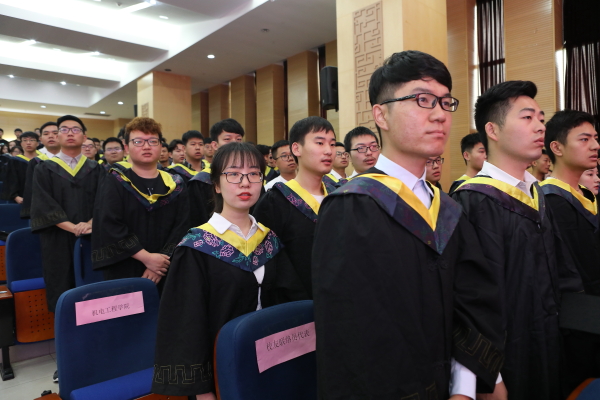 副校长丁成忠宣读《关于为2019届本科毕业生颁发毕业证书、学士学位证书的决定》。我校2019届2500余名本科毕业生顺利毕业并获学士学位证书。