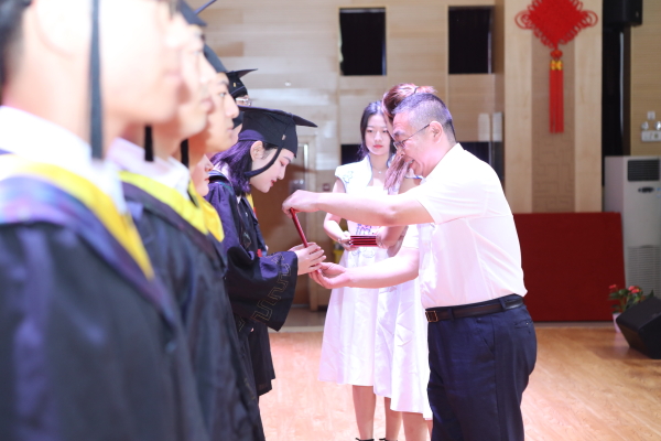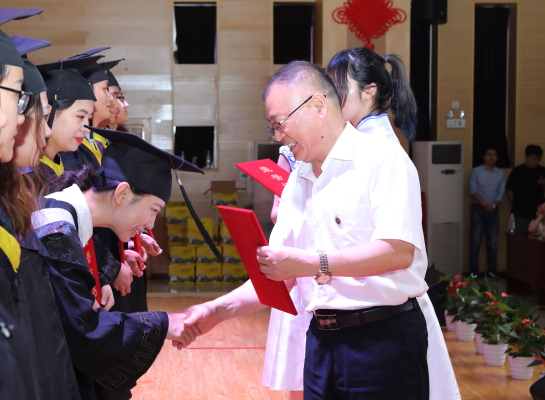 党委书记丁德智宣读《关于表彰2019届优秀毕业生的决定》,2019届毕业生共263人受到表彰。副校长周建设为优秀毕业生颁发荣誉证书。