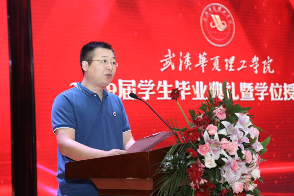 教师代表、土木建筑工程学院副院长潘志橼作为教师代表发言。他寄语毕业生,谨记我校立德、乐学、笃行、日新的校训,鼓励毕业生们保持勇敢、无畏、忍耐、坚毅、坚守的精神,不断提高自身能力,居安思危,终身学习,保持可持续发展。