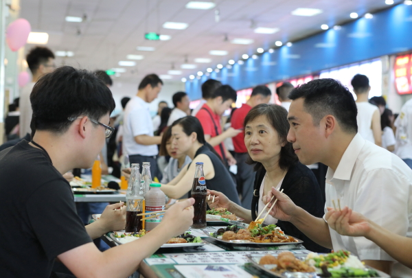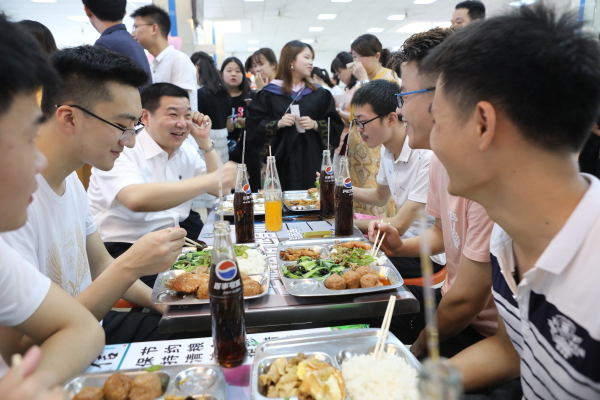 “菜品味道如何?够不够吃?”“工作签的哪里?还满意吗?”6月18日中午,学校李园一楼餐厅热闹非凡,五百余名2019届毕业生及家长齐聚李园餐厅一楼,与校领导、师生代表们边聊天边共进午餐,现场气氛温馨融洽。