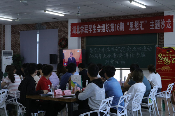 为深入学习贯彻习近平总书记纪念五四运动100周年大会讲话精神,5月16日下午,湖北省高校学生会组织第16期“思想汇”主题沙龙暨习近平总书记纪念五四运动100周年大会重要讲话专题研学活动在我校举行。团省委学校部相关负责人、省学联负责人及来自全省30余名高校学生会、研究生会学生代表参加活动。会议由湖北省学联驻会执行主席李小睿主持。
