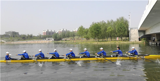 4月20日上午,郑州龙子湖赛艇挑战赛暨2019年中外名校大学生赛艇挑战赛在郑州市郑东新区智慧岛龙子湖拉开战幕。在男子八单有舵手4.9公里环湖追逐赛项目上,我校赛艇队成员团结一心、齐心协力,以18分26秒14的好成绩斩获季军。