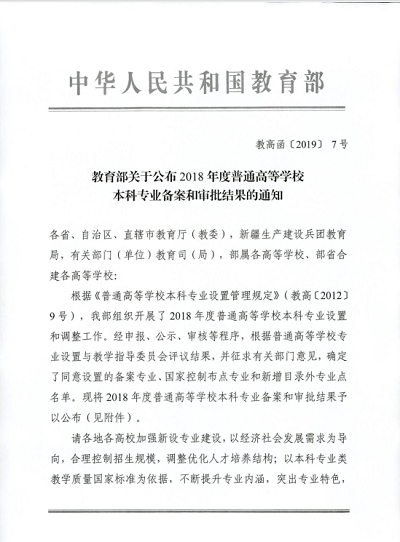 3月29日,根据《教育部关于公布2018年度普通高等学校本科专业备案和审批结果的通知》(教高函〔2019〕7号)文件,我校2018年申报的数据科学与大数据技术本科专业顺利获批,将于2019年秋季正式招生,学制4年,授予工学学位。