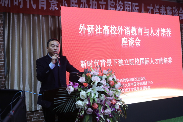 研讨会围绕“新时代背景下民办独立院校国际人才培养”议题展开。全国独立学院及转设高校外语教学研究会会长陈仲利、外语教学与研究出版社副总编辑常小玲、湖北省高等教育学会大学外语教学专业委员会会长樊葳葳、上海外国语大学贤达经济人文学院外语学院院长赵德全教授等高校外国语学院负责人,我校董事长张晓东,外国语学院院长刘沛及教师代表参加。会议由外研社华中信息中心主任卢汉生主持。