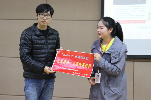 “校企1+1,实战营销,挑战自我,让校园生活更精彩。” 12月6日下午2点半,我校首届“企业++”校园策划营销大赛闭幕式在2教201举行。副校长丁成忠,创新创业学院院长李兰民、生物与制药工程学院院长程宏夏、商学院党总支书记张平,武汉杰明勒生物医药科技有限公司董事长、生物与制药学院16级学生陈涛,浙江我武生物科技股份有限公司武汉华夏理工学院订单班代表朱鑫及教师代表出席。活动由生物与制药学院党总支书记龚先军主持。