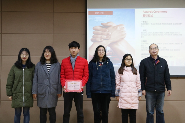 朱鑫宣布大赛获奖结果。比赛共评选出一二三等奖和优秀提名奖,校院领导为获奖团队颁奖。