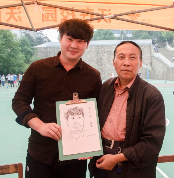 生动可爱的漫画,抽象有趣的蜡笔画,写实文艺的铅笔素描,端庄的毛笔画法……,各位不同的画风吸引了众多师生热情参加,活动现场非常热闹。每位画家的桌子前排起了前来参与画像的长队。12位漫画艺术家们手执画笔,欣然泼墨,为广大师生创作了一幅幅生动的漫画肖像作品,或搞怪,或可爱,学生们看到画像后开怀大笑,赞不绝口。