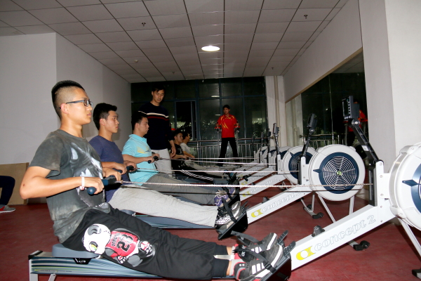 近日,我院在学院体育馆一楼开设赛艇俱乐部专门训练室,并购进一批新设备,赛艇队训练进入陆上体能训练阶段。