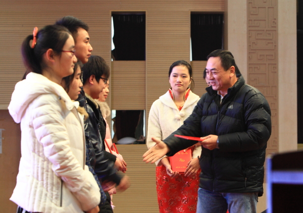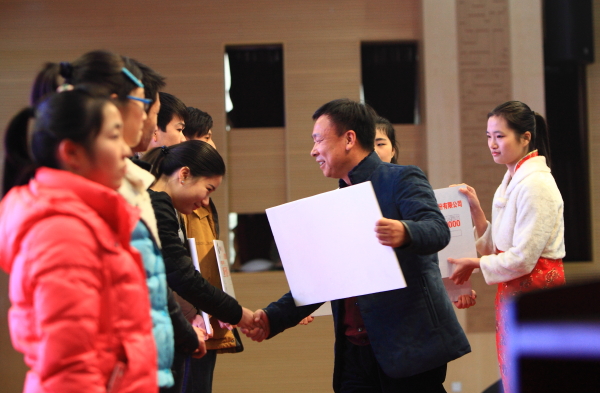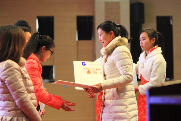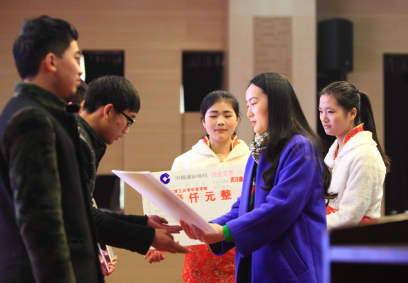 随后,学院特邀的社会奖学金赞助企业代表,人福医药集团股份公司群团部总监梁爱玲、武汉三特索道集团股份有限公司总裁郑文舫、武汉元丰汽车零部件有限公司行政总监邓家宜、宜昌人福药业有限责任公司工会副主席任淑娟、天风证券股份有限公司工会副主席付军、武汉鑫天力建筑工程有限公司副总经理倪启飞、武汉新洪建筑工程有限公司办公室主任张桂宏等为获得社会奖学金的学生颁奖。
