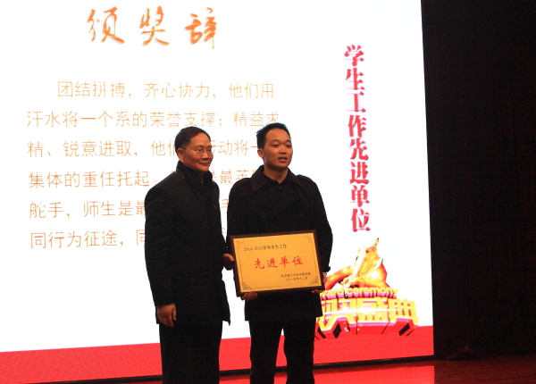 吴永桥院长为2014-2015学年学生工作先进单位机电工程系颁奖。