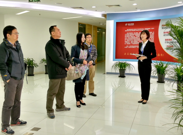 11月5日,考察团一行来到北京化工大学信息中心。吴汉桥副院长首先介绍了我院此行调研学习的目的,表示希望借鉴学习北京化工大学在校园信息化建设方面的成功经验和做法。该校信息中心主任赵英和部门员工对我院的到来表示热烈的欢迎,并在座谈中介绍了北京化工大学校园网和一卡通建设情况。双方还就软硬件投入、网站升级、信息安全、门禁管理系统、迎新系统及信息人才培养与稳定等方面展开交流。