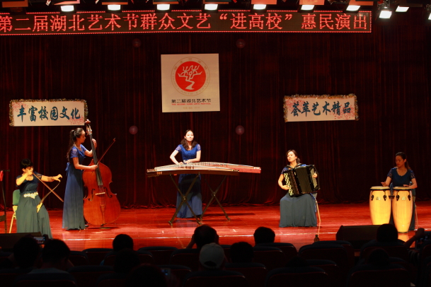 10月19日下午3时,第二届湖北艺术节群众文艺展演惠民演出在我院报告厅举行。湖北各界艺术爱好者为我院师生献上了一台丰盛文艺大餐。本次演出是“第二届湖北艺术节”——“四进”活动,走进高校的首场演出。