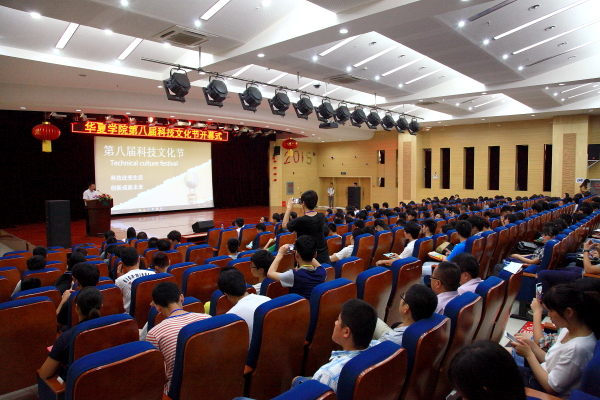 李海民为开幕式致辞,科技文化节是我院每年的传统活动,旨在进一步深化校园建设,推进大学生素质教育工程向纵深方向发展,营造活跃、浓郁的科学和人文精神氛围,提高在校学生的学以致用和创新能力,为青年学生成才服务。此次科技节主题为“科技改变生活,创新成就未来”,是同学们发挥聪明才智、展现创新精神的良好平台,希望同学们积极参与到科技节的各项活动中去,各尽所能,各尽其才。