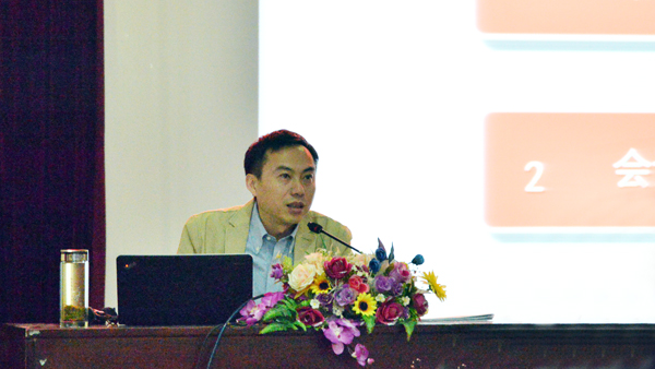 张晓东董事长以第十二届全国人大三次会议为主题,向师生介绍了人大的会议议程,并着重介绍了2014年工作回顾、2015年工作总体部署和2015年重点工作。在14年工作回顾中,他分别从GDP增长状况、就业现状、经济结构变化和人民生活条件的变化四个方面入手,说明了改革开放的新突破;15年工作部署中,他详细说明了15年政府工作报告提出“三双”的工作部署:双目标、双引擎,双结合;在15年工作重点方面,他也从稳增长结构、改革开放清单、民生数字、反腐四个方面进行了阐述。
