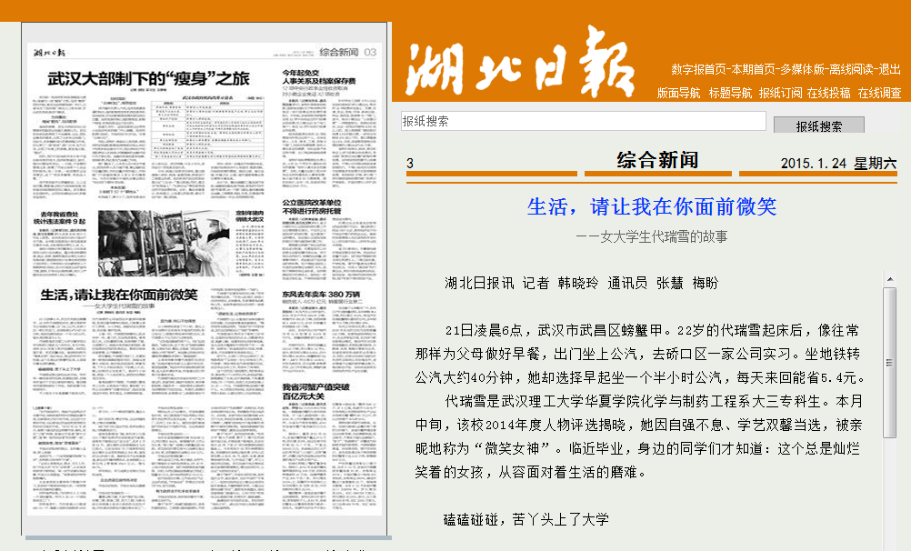 湖北日报:http://hbrb.cnhubei.com/html/hbrb/20150124/hbrb2539087.html
