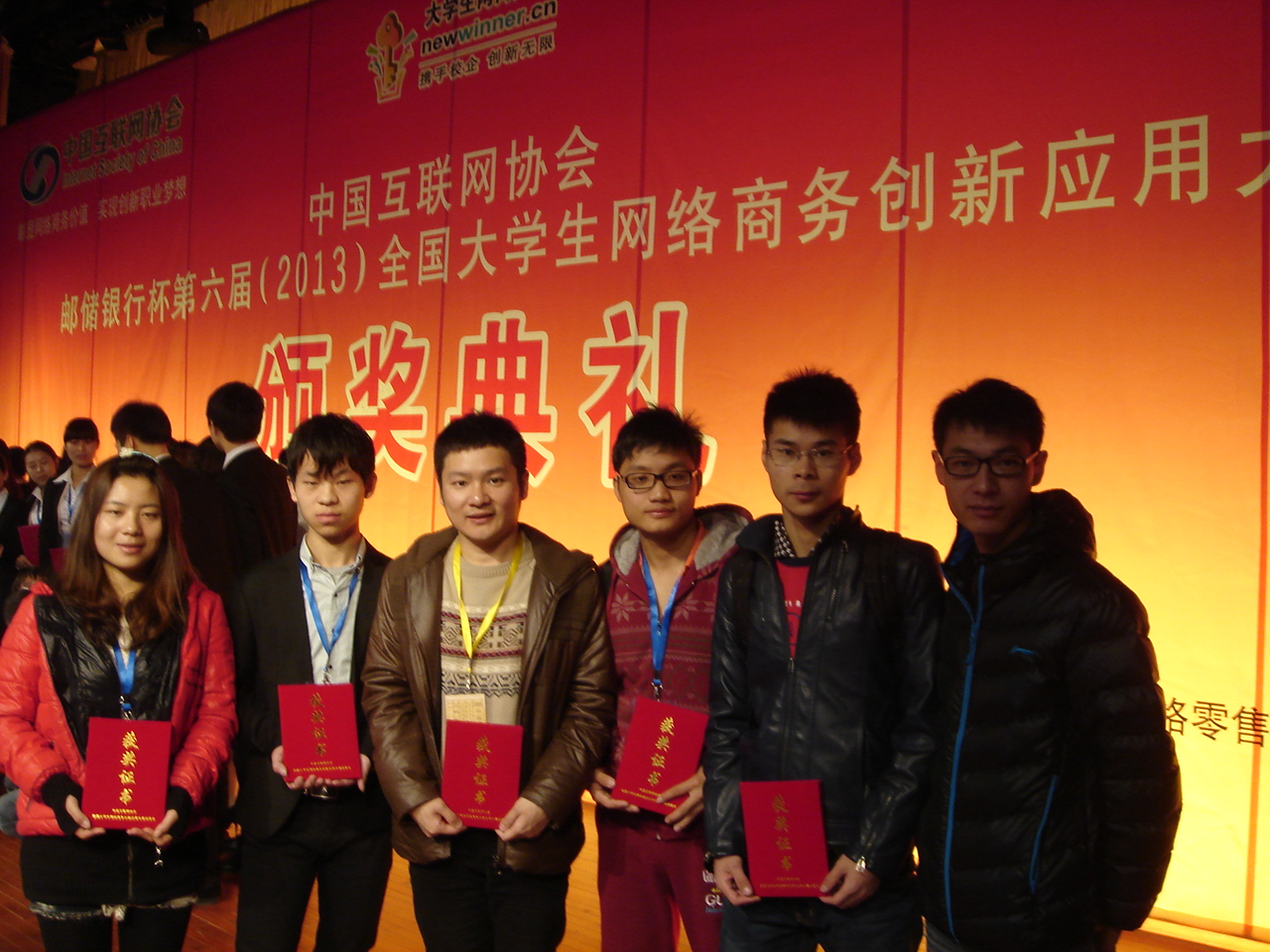 2013年11月16日至11月19日,经济与管理系电子商务专业邱源、王明材、王超君、蒋志刚、龚凤明5名学生组成的“E邮华夏”团队,由吴钟老师带队,前往北京参加了“第六届全国大学生网络商务大赛”总决赛,与来自全国各地100多所高校的网络商务人才共同竞争,最终以“邮政储蓄银行如何网络信贷”为比赛方案选题,获得本科组全国二等奖,吴钟老师获得全国总决赛优秀指导老师奖。