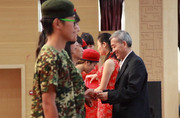 9月25日上午,我院2013年军训表彰大会在学术报告厅举行。学院董事、院长吴永桥,海军工程大学动力学院学员三旅旅长梁建勇大校,副旅长姚雪华上校,学院董事、常务副院长周建设,副院长常恩霖,副院长黄国赋出席,院属各单位负责人、教师代表和军训团成员参加了大会。大会由学院党委常务副书记张荣国主持。