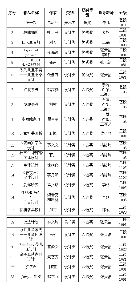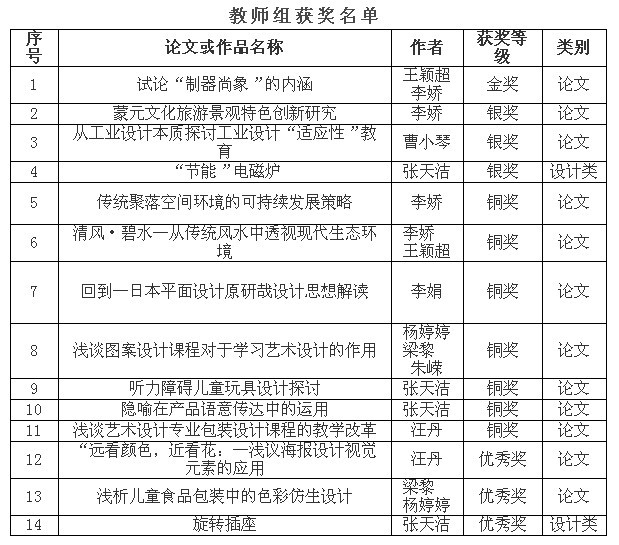 此次比赛得到了学院的大力支持和帮助,我系设计专业教师积极组织学生参加此次设计大赛,激发了学生浓厚的学习兴趣,拓宽了学生视野并激发学生的创新意识,获奖的作品既有我系毕业生的毕业设计作品,也有一些课程的优秀作业,在一定程度上反映了我系学生毕业设计的质量和课程教学效果,同时展现了我院设计专业师生的设计水平和创新能力。(文/安吉 编辑/林一)