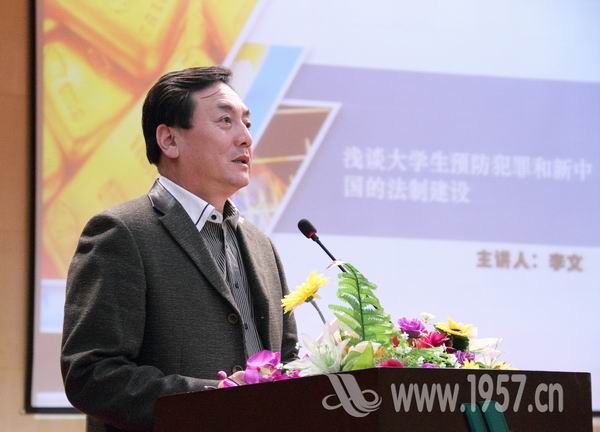 团省委副书记邹霞表示,青少年法治宣传教育是“法治湖北”、“幸福湖北”建设的一项基础性、先导性、战略性工程。今年,既是“十二五”规划的重要之年,也是实施“六五”普法的关键之年。“我们把12月份作为“青少年法治教育宣传月”,并且在全省集中开展“百场万人”法制讲座,就是要在全社会营造人人学法、人人知法、人人守法的良好法治环境。”她要求高校团组织坚持把青少年普法教育工作摆在更加重要的位置;将法律知识的普及、法治精神的培育与在校大学生的养成教育紧密结合起来,引导、服务大学生全面健康成长。她希望参加报告会的学生成为法治精神的倡导者、法律知识的传播者和法治社会建设的实践者。