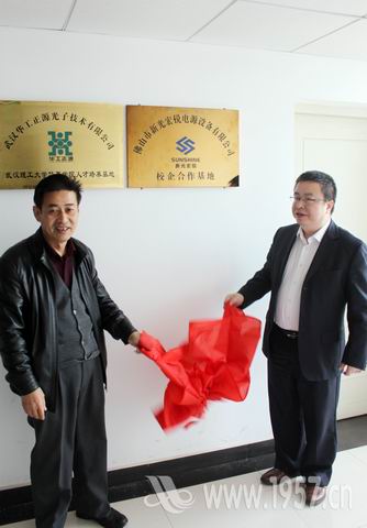 2012年11月5日上午,佛山新光宏锐电源设备有限公司董事长白维一行来我院进行校企合作交流考察,并为佛山新光宏锐武汉理工大学华夏学院校企合作基地揭牌。学院副院长黄国赋、信息工程系系主任马德宝、就业中心主任李家梁及信息工程系相关人员参加会议。