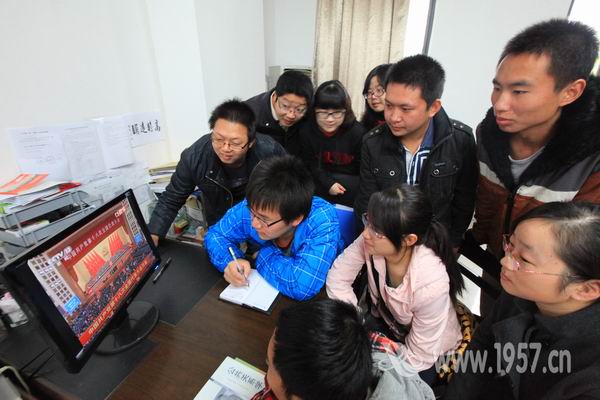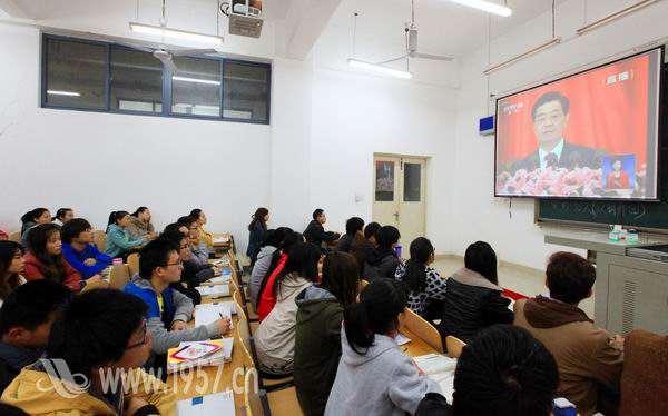 市场营销1111班团支部组织大家观看十八大现场直播