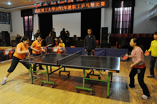 11月10日—11日,武汉理工大学2012年“乒协杯”教职工乒乓球比赛在校工会活动中心举行。我院由张晓东、李海民、胡贵章、柯鑫、常万顺、刘源等6人组成的乒乓球男队和由廖晓燕、李海燕、田玲、黄玲红组成的乒乓球女队共10人参加了比赛,同时获得女子组团体冠军和男子组团体冠军。