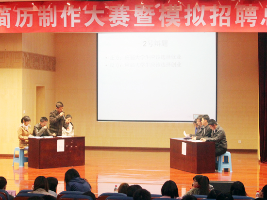 就业服务中心主任李家梁与大家一同回顾了我院简历制作大赛的历史,他介绍此次此次比赛的8名候选人是由各系举办小型比赛后推选出的。“简历制作大赛能够锻炼学生的能力,为我院学子日后就业打下了良好基础。”