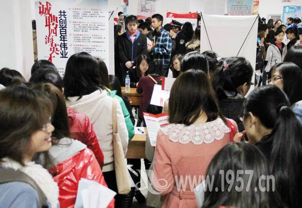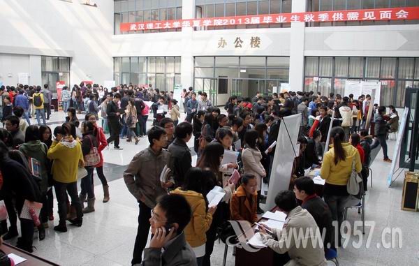 11月17日,我院“2013届毕业生秋季双选会”在综合楼一楼大厅举行。本次招聘会共有82家企业参加,包括华工科技-武汉华工正源光子技术有限公司、武汉人福药业有限责任公司、东风小康汽车有限公司、南京开瑞汽车技术有限公司等知名企业,数量比去年略有上升。招聘专业包括土木、汽车、机电、管理、行政、金融、会计、文秘、市场营销等几十个种类,共计提供就业岗位2400多个。学院副院长黄国赋、院长助理、学工处处长李海民等院领导及各系主任、党总支书记、辅导员也来到现场,关注毕业生的应聘情况。