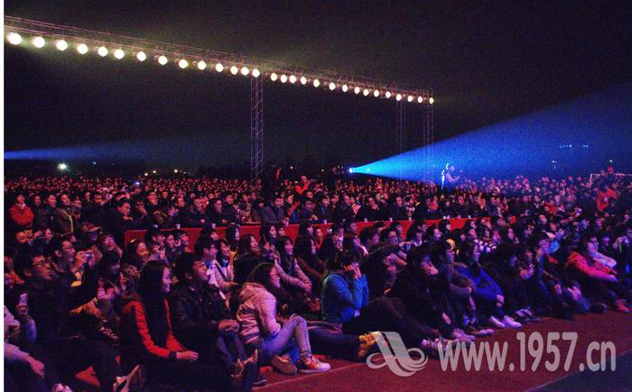 让青春在歌声中绽放,让记忆在歌声里流淌。11月21日晚7点,我院2012届乘着歌声的翅膀主题晚会在足球场拉开帷幕。党委常务副书记张荣国,党委副书记、副院长吴汉桥,院长助理、教务处处长丁成忠,院长助理、学生工作处处长李海民及各职能部门、各系负责人分别在前台就座。