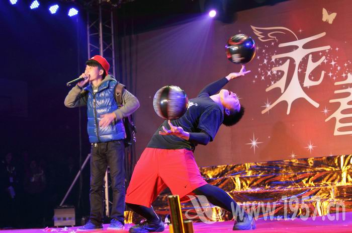 其中,来自外语系的“好声音”《rolling in the deep》唱响了《绽放·青春》篇章,以现代流行元素表现了当代大学生的朝气与活力;民乐重奏《半个月亮》古筝与二胡相得益彰,经济与管理系的演员演绎了古风柔情;动感的街舞表演《街舞四重奏》别出心裁地将舞蹈套路与剧情融合,活灵活现地表现了大家喜闻乐见的舞蹈形式;神奇的声音魔术《B-box》,千变万化的口技配合动感活力的舞蹈,花式篮球上下旋转翻飞,斗嘴与斗球的完美结合引爆全场;红遍全球的神曲《江南style》也出现在了舞台上,“鸟叔”的别致造型,帅气的骑马舞,伴着动感的音乐在璀璨的灯光下相映成趣,掀起了晚会的一个小高潮;青春是跃动的激情,活力四射的《歌舞青春》表演将整场晚会的气氛渲染得浓烈。