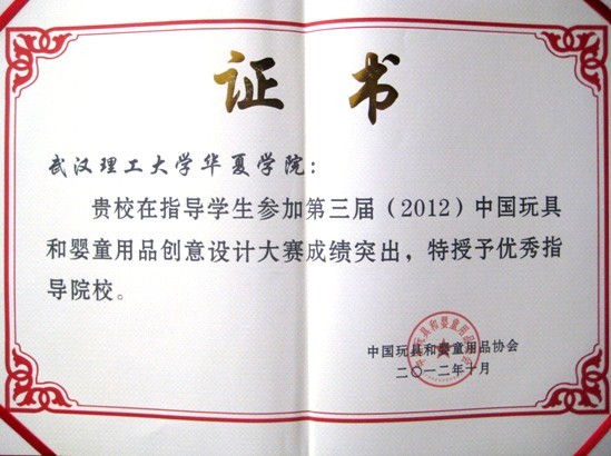 本届大会以“管理创造基础、价值成就未来”为主题,国际玩具工业理事会主席,美国、巴西等玩具和婴童用品协会主席,20多个玩具和婴童用品产区的地方政府部门及各省市协会领导,国际品牌企业高层,400多家生产企业,100多家动漫授权企业,100多家金牌渠道商以及来自全国100多家百货商场的优秀经理人等共700余位行业精英出席,行业大会由原中国工业经济联合会秘书长吴敦廉主持。现场举行了2012年中国玩具和婴童用品行业表彰颁奖典礼,中国玩具和婴童用品协会常务副会长兼秘书长梁梅宣布“第三届中国玩具和婴童用品创意设计大赛”获奖结果,我院人文与艺术系工业设计专业同学张雅文获得铜奖,奖金5000元,另外五名同学获得优秀奖,我院获得“院校优秀组织奖”。