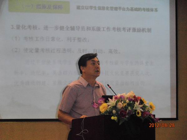 8月28日上午八点整,学院2012年学生工作研讨会在学术报告厅隆重开幕。学院党委副书记、副院长吴汉桥、学工处团委全体人员、各系党总支书记、总支秘书、学工办主任及全体辅导员参加了开幕式。