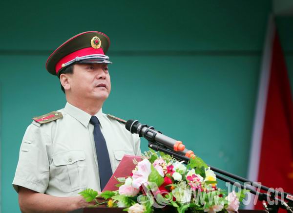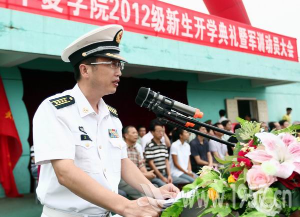 海军工程大学动力工程学院训练部部长苗海大校发言,他说:“国家兴亡,匹夫有责,国防是国家安全的重要保障,每个人都有义务为保卫国家做出努力。”他要求新生积极参加训练,锻炼出强健的体魄,培育自己的爱国精神,有机会为国家的国防建设做出贡献。