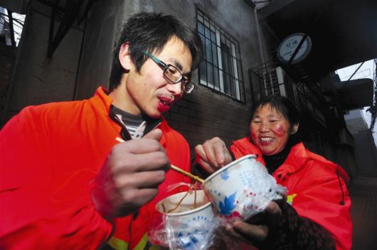 今年寒假,刘普林没有回武穴老家,和往常的节假日一样,他抢过妈妈手中的扫帚,帮妈妈扫大街,这个春节,全家人是在大街上度过的。