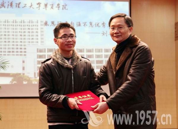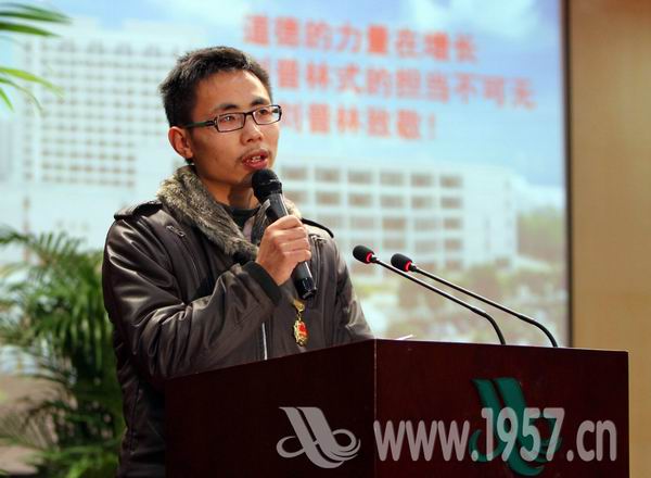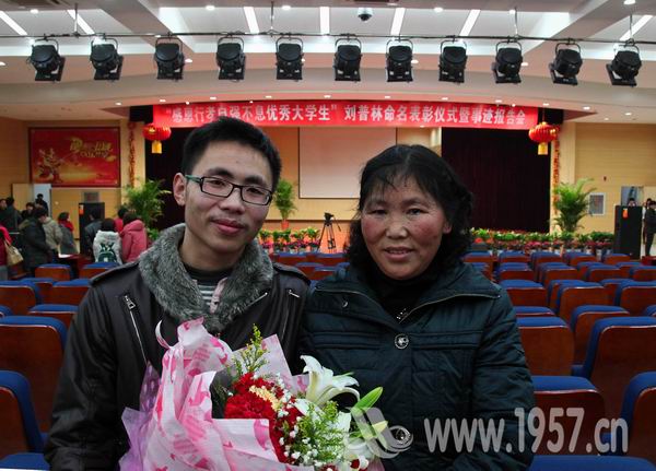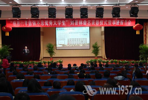 刘普林自2010年到武汉求学以来,为帮助体弱多病的父母减轻劳动强度,每逢节假日就去替母亲打扫街道。他的事迹经中央省市多家媒体连续报道后,引起了强烈的社会反响。学院党委常务副书记张荣国在会上宣读《关于授予刘普林“感恩行孝自强不息优秀大学生”荣誉称号的决定》,要求在全院范围内开展向刘普林同学学习的活动。把刘普林同学的感人事迹作为践行社会主义荣辱观的生动教材,引导广大师生继承中华民族孝亲敬老的传统美德。
