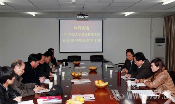 12月21日下午,华中师范大学武汉传媒学院院长沈振煜、副院长周志宏等一行8人来我院交流考察。我院院长吴永桥、副院长常恩霖、党委副书记、副院长吴汉桥以及教务处、学工处、人力资源部、行政处负责人在会议室迎接了来客。