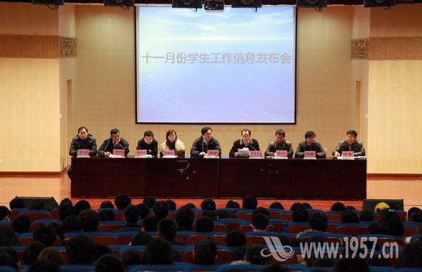 12月1日下午4点,我院十一月学生工作信息发布会在学术报告厅展开,院党委副书记、副院长吴汉桥主持会议,党群工作部、教务处、行政处、图书馆、团委、现教中心、就业指导中心、保卫处、后勤集团等有关单位负责人出席,就学生提出的学习及生活方面的问题给予解答。