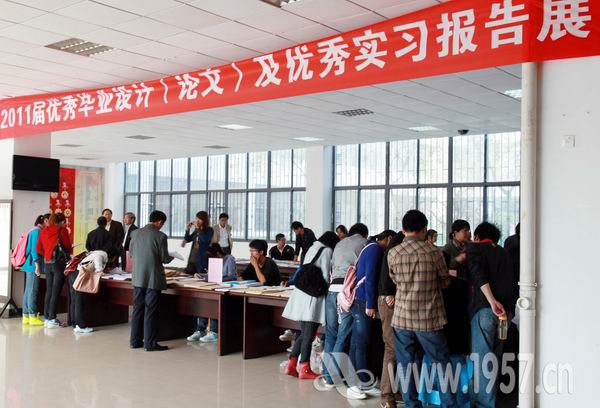 毕业设计(论文)是实践教学中的一个重要内容,是对学生理论知识掌握程度和解决实际问题能力的综合检验,实习工作是课堂教学的延伸,是培养学生实际操作和独立工作能力的一个重要环节。为此,各系遴选优秀毕业设计(论文)和实习报告共350多份在教学楼一楼大厅分区域展出。