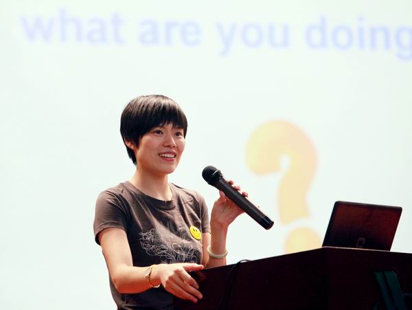 针对大学生普遍的四六级难题她告诉大家:首先应克服恐惧心理;其次努力去实践,不要瞻前顾后,大胆实践才是最重要的。“学语言是个漫长的过程,贵在持之以恒,肯下功夫肯吃苦。”