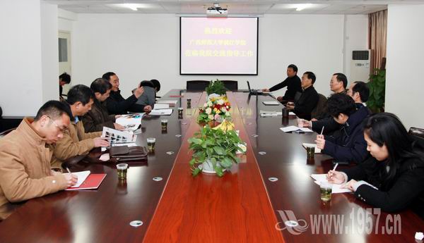 此次来访,双方就各自“十二五”规划的制定以及学院的建设等相关问题进行了交流学习。吴永桥院长对漓江学院一行的来访表示欢迎,对其办学模式表示肯定。在探讨“十二五”规划方案的制定时,他介绍说,“十一五”期间,我院走的是外延式的发展道路,“十二五”规划,我院将把重点放到内涵建设上。广西师范学大学漓江学院党委书记、常务副院长唐凌也就漓江学院的发展作了介绍,在学院的专业建设、师资队伍、人才培养、教学改革以及国际交流合作等方面同我院作了深刻交流。(文/黄柏林 摄影/张培杰 编辑/陈泽烨)