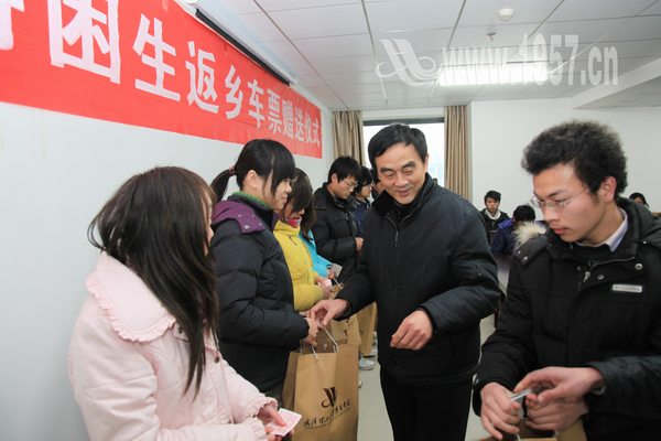 据悉,从2009年寒假开始,为帮助家庭经济困难学生顺利返乡与家人团聚,学院每年拿出专项经费为100名特困学生赠送返乡车票和生活礼包,在一定程度上缓解了家庭经济困难学生的经济压力,也得到了学生的肯定和认可。(文/胡春福 摄影/张培杰 编辑/陈泽烨)