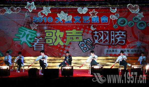 2010年12月2日晚18:30,我院一年一度的学院盛会——“乘着歌声的翅膀”主题晚会在体育场隆重举行。院长吴永桥,党委常务副书记张荣国,党委副书记、副院长吴汉桥,学院办公室主任、宣传处处长廖晓燕等领导也来到现场与全院三千余师生共同观看了演出。