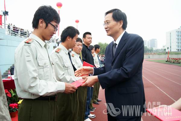 学院党委常务副书记张荣国宣读军训表彰决定,对22个先进集体, 208名先进个人进行表彰。院领导给受表彰人员颁发证书及奖状。