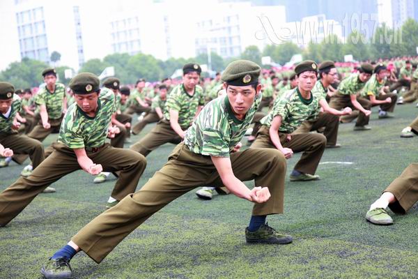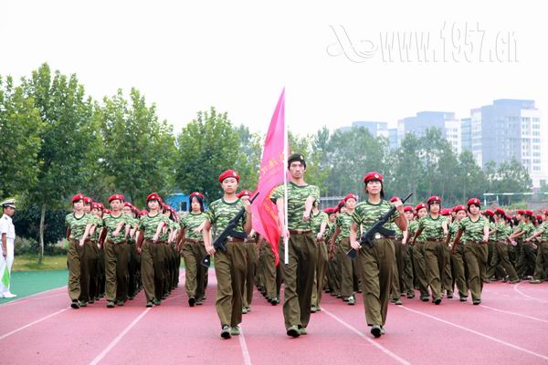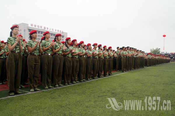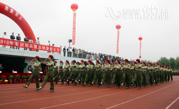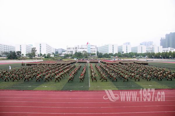 上午9点整,阅兵式在雄壮的国歌声中拉开帷幕。庄严肃穆的升旗仪式之后,受阅方阵首先在体育场上接受张晓东董事长的检阅。随后参加此次军训的3700多名2010级新生排列成整齐的方阵、喊着嘹亮的口号依次走过主席台,接受领导检阅。现场精彩的军体拳表演也博得了阵阵掌声。军训学员们精神抖擞,意气风发,步伐坚毅,充分展示了当代大学生朝气蓬勃、奋发向上的精神风貌。