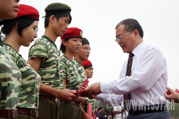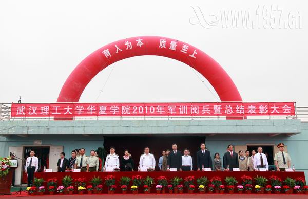 9月26日,武汉理工大学华夏学院2010年军训阅兵暨总结表彰大会在我院运动场上隆重举行。党的十七大代表、武汉理工大学华夏学院董事长张晓东,海军工程大学梁建勇大校、唐贤仿中校,院领导吴永桥、张荣国、周建设、吴汉桥、余正建在主席台就坐。学院各职能部门、各系负责人出席大会。大会由常恩霖副院长主持。