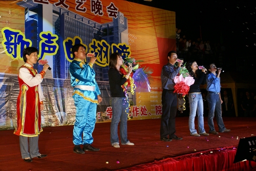 11月9日晚七时,在我院体育场上举行了令人期待已久的“乘着歌声的翅膀”2006年大型文艺晚会。无论表演者还是观看者,全院同学怀着一份期待的心情早早来到现场。特别令我们兴奋的是,我院院长吴永桥、党委副书记常恩霖、副院长周建设、副院长余正建、党委副书记副院长吴汉桥等领导在百忙之中应邀参加了晚会。