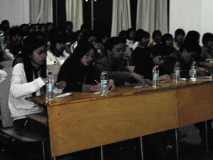 台上的气氛活跃,台下的观众也在为选手鼓掌,那一阵阵不断的掌声在为他们喝彩,为选手们感到骄傲。每位选手都将自己精心准备的演讲发挥的淋漓尽致。大家在浓厚的气氛中真切地感受到知识的力量。英语1062班的选手胡健最为出众,声情并茂的演讲,机智的回答,使他赢得了全场最高分。有同学因紧张而中断的,台下同学都以掌声为其鼓励。