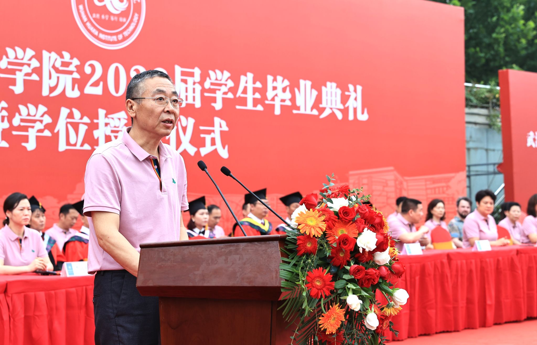 教诲如春风,师恩似海深。毕业生代表将手中的鲜花献给教职工,表达对四年领路人的感恩与爱戴。教师们饱含深情地接过鲜花,把对即将离校的学子们的不舍化作了深深祝福。